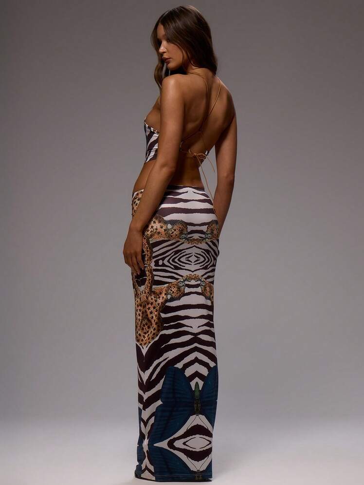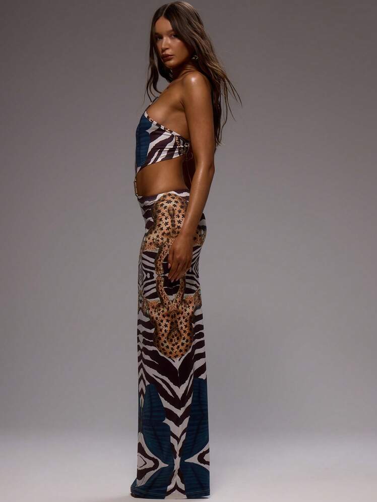 Animal Print Halter Neck Maxi Dress