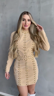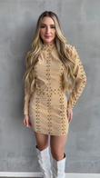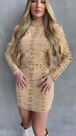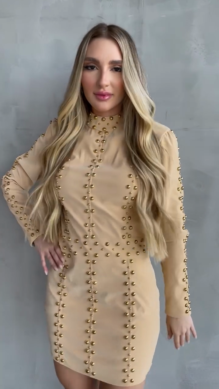 Beige Studded Long - Sleeve Mini Dress