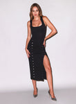 Elevate your evening look with this Black Bodycon Midi Dress. Featuring a sleek, form - fitting design and silver button details, it creates a chic, sophisticated vibe. Perfect for parties, dinners, or special events. Lightweight fabric ensures fast page load. Shop now for a timeless, figure - flattering dress!