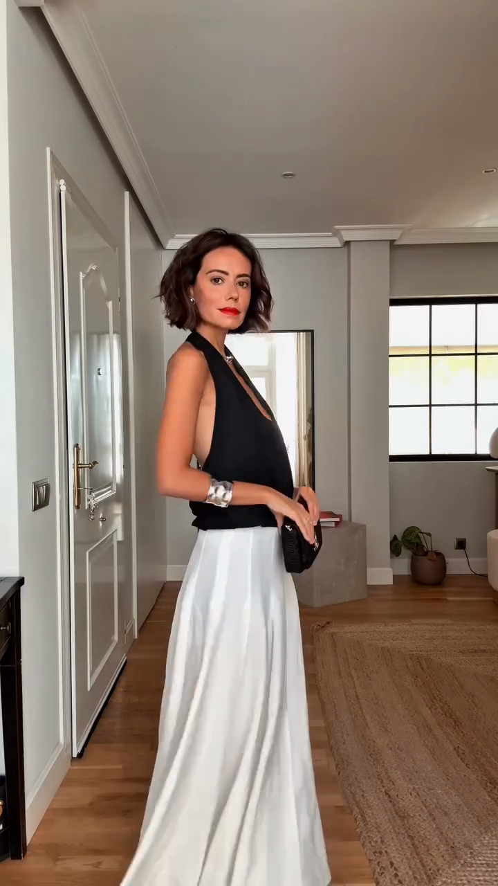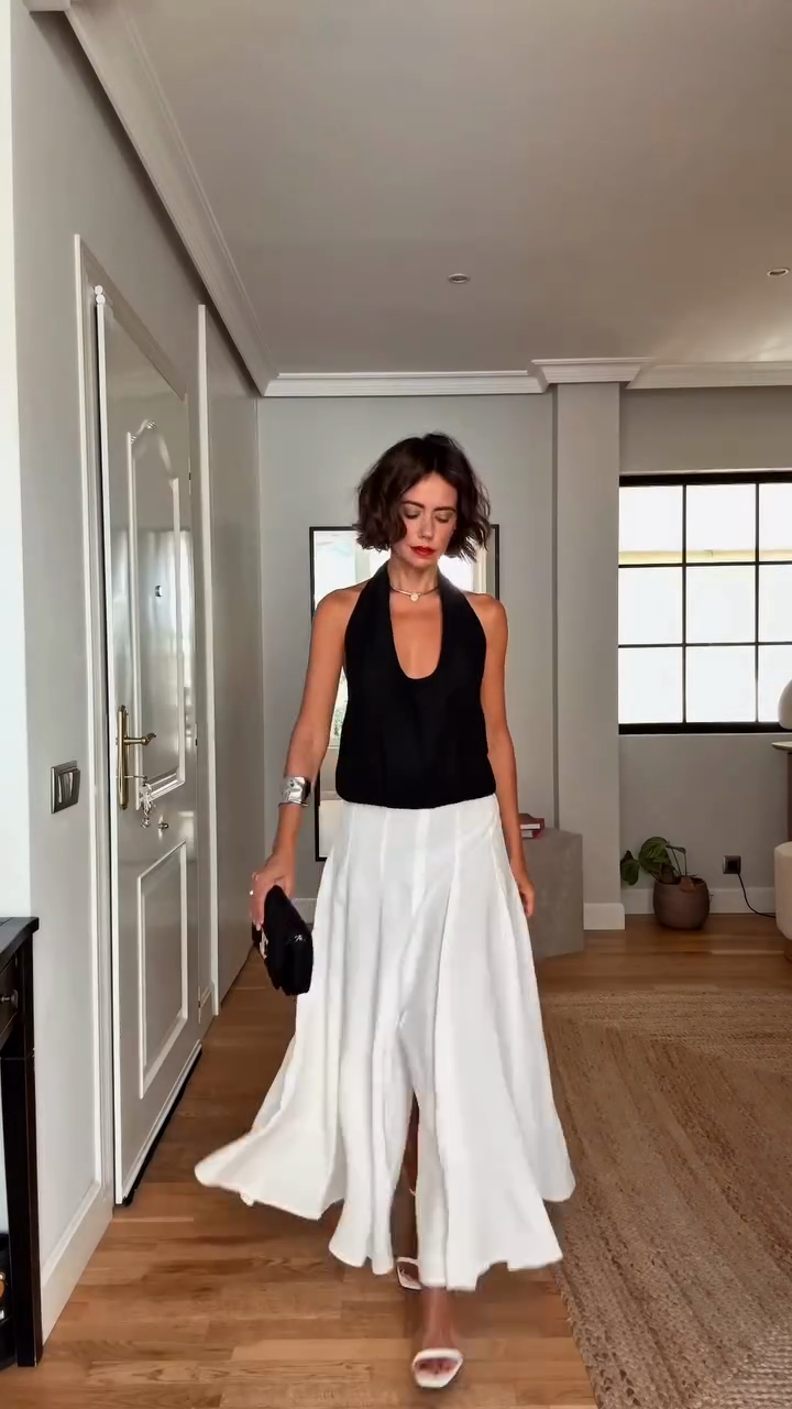 Black Sleeveless Top and White Maxi Skirt Set