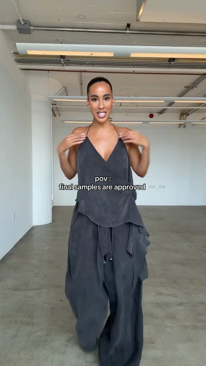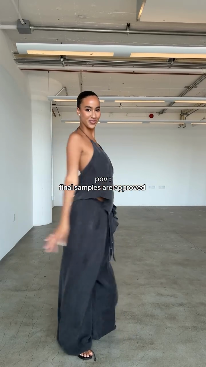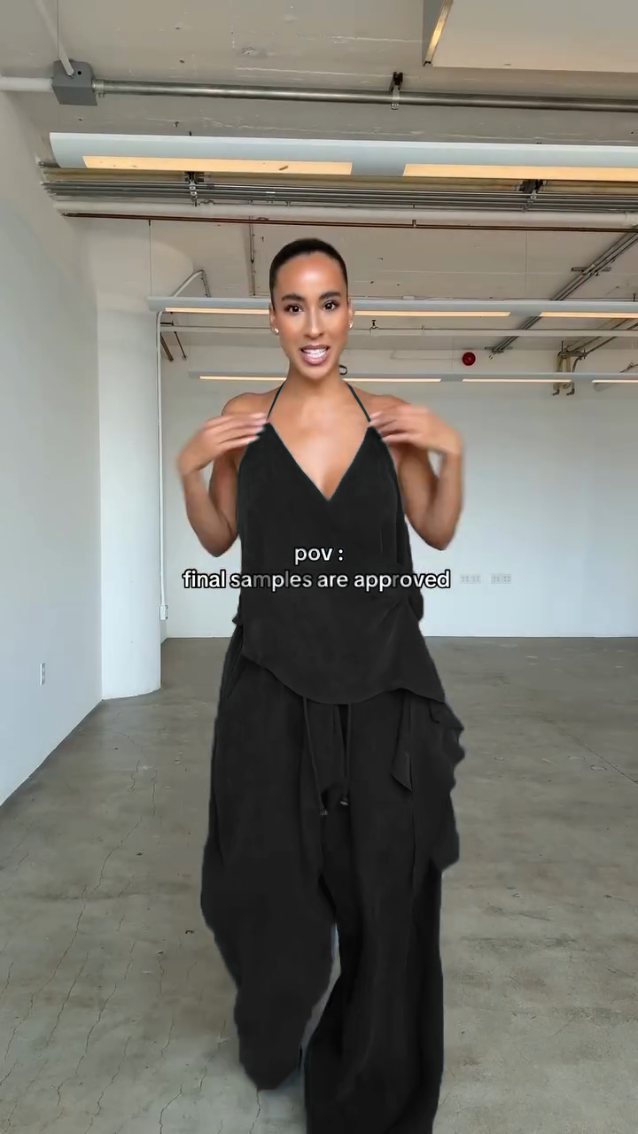 Black V - Neck Halter Top and Wide - Leg Pants Set