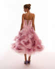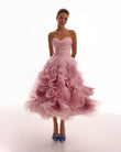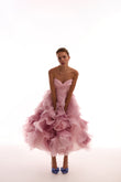 Blush Pink Strapless Ruffled Organza Midi Dress