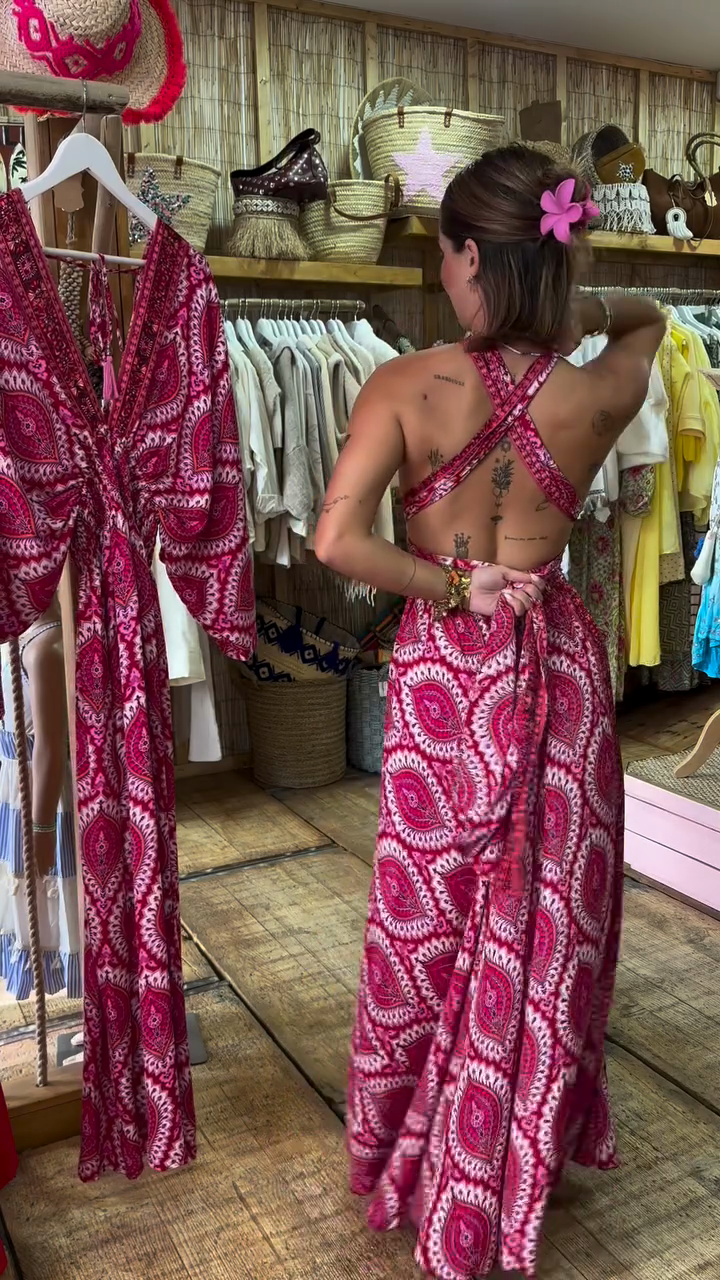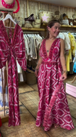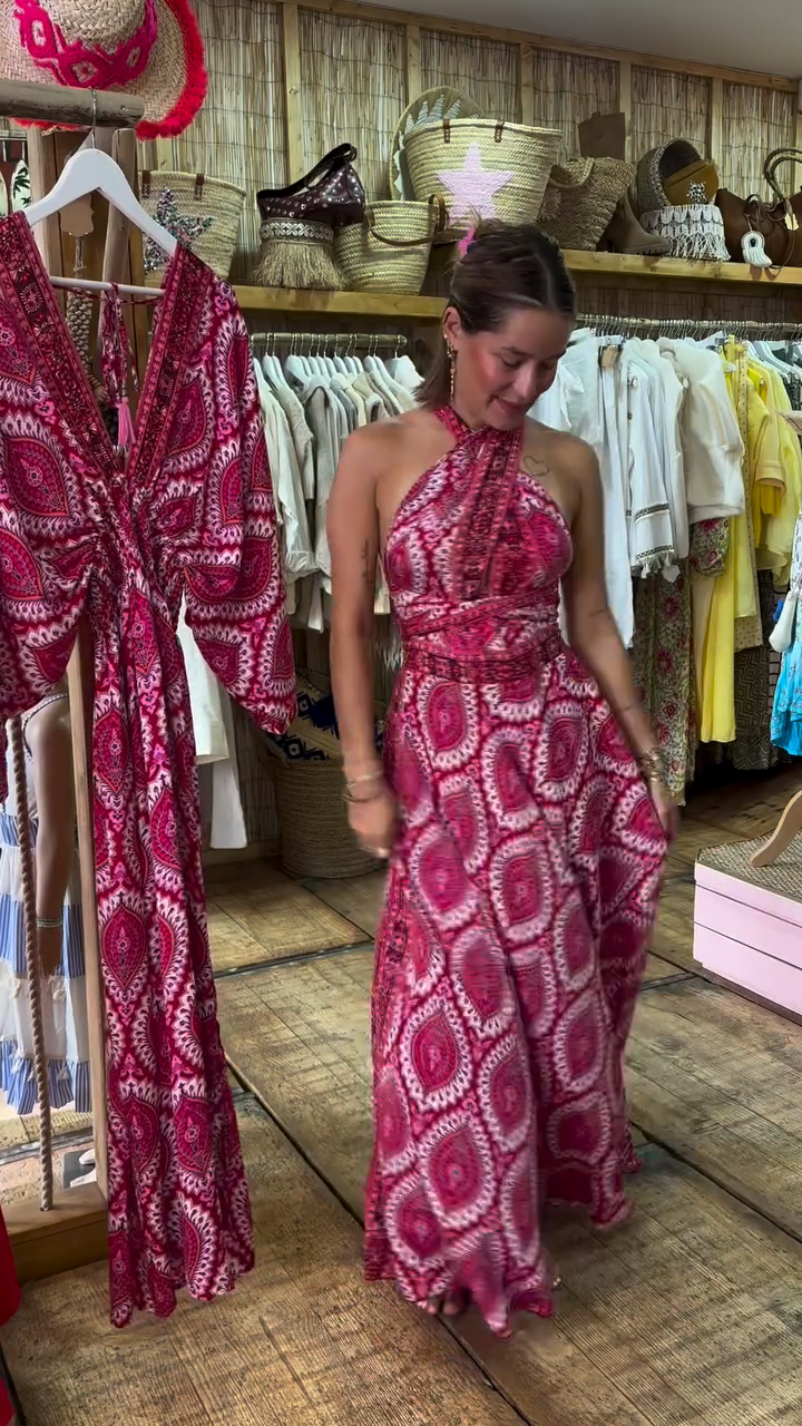 Boho - Chic Pink Patterned Halter Maxi Dress