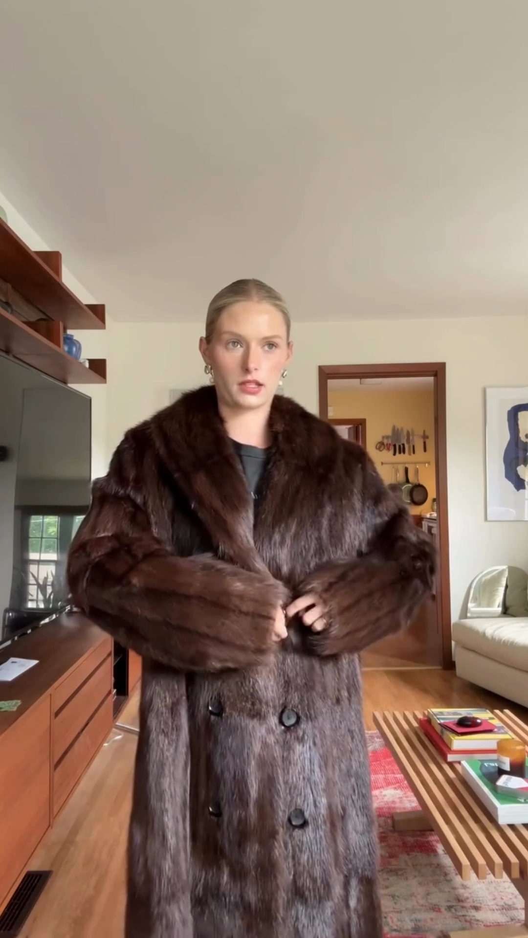 Brown Double - Breasted Fur Coat