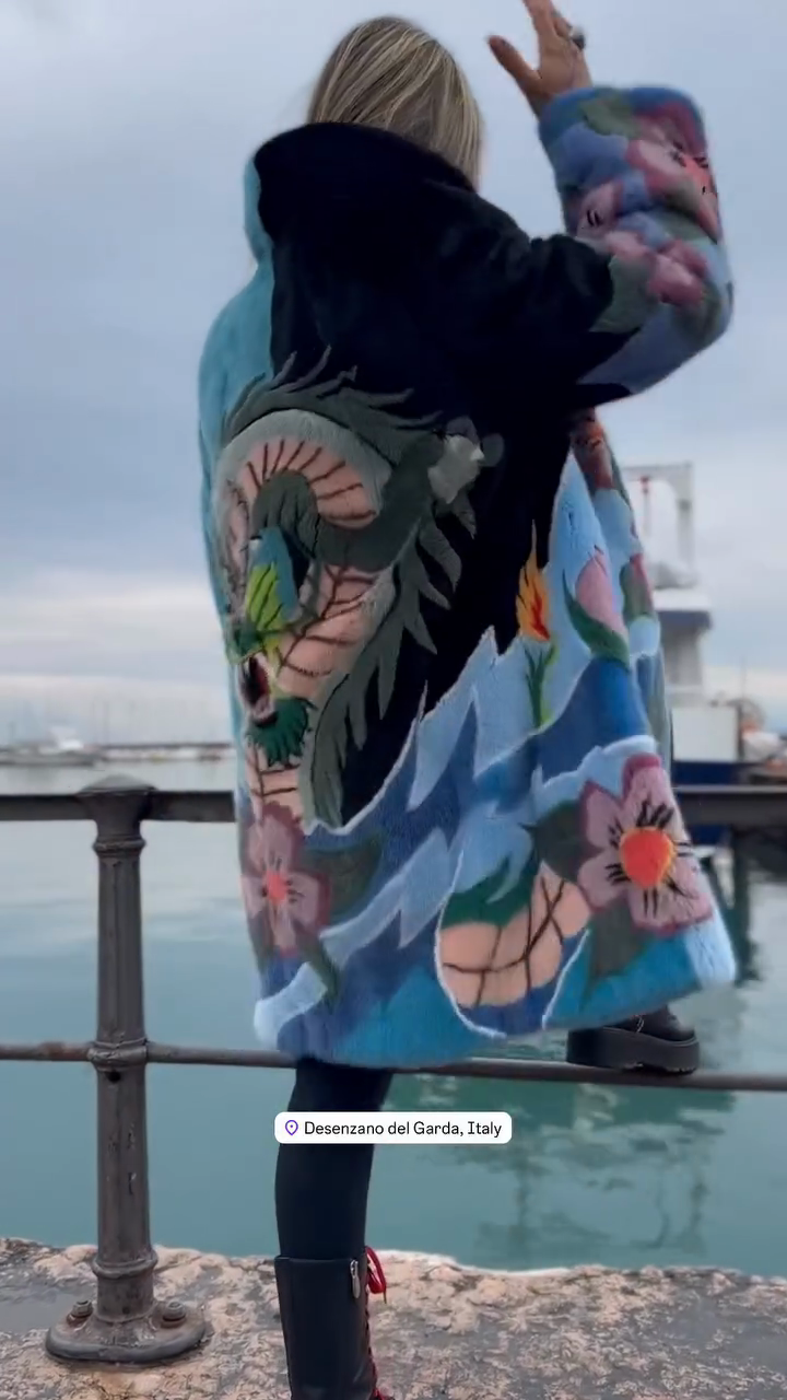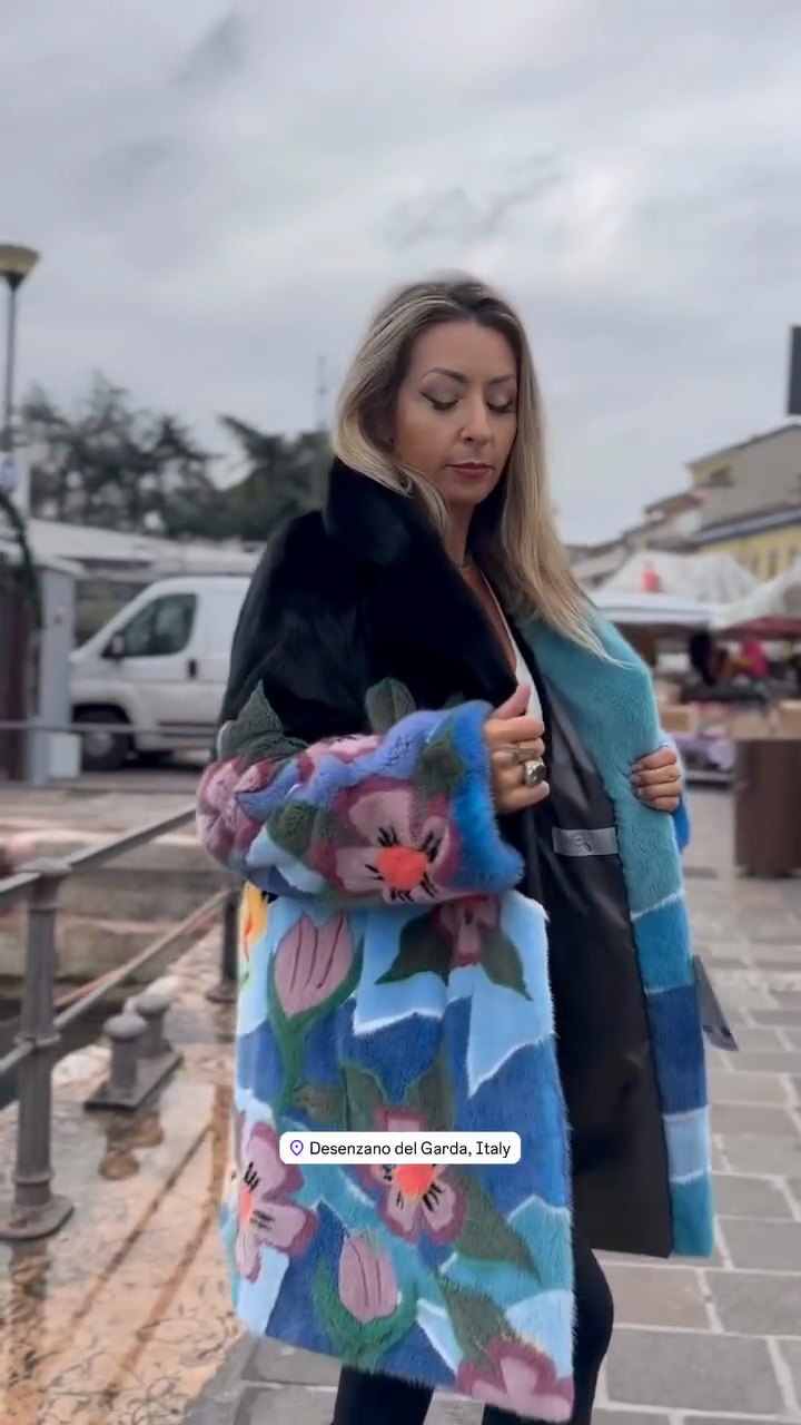Colorful Floral - Printed Fur Coat