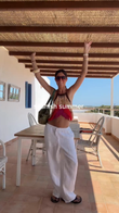 Colorful Fringe Crop Top and White Wide - Leg Pants Set