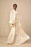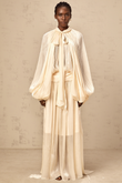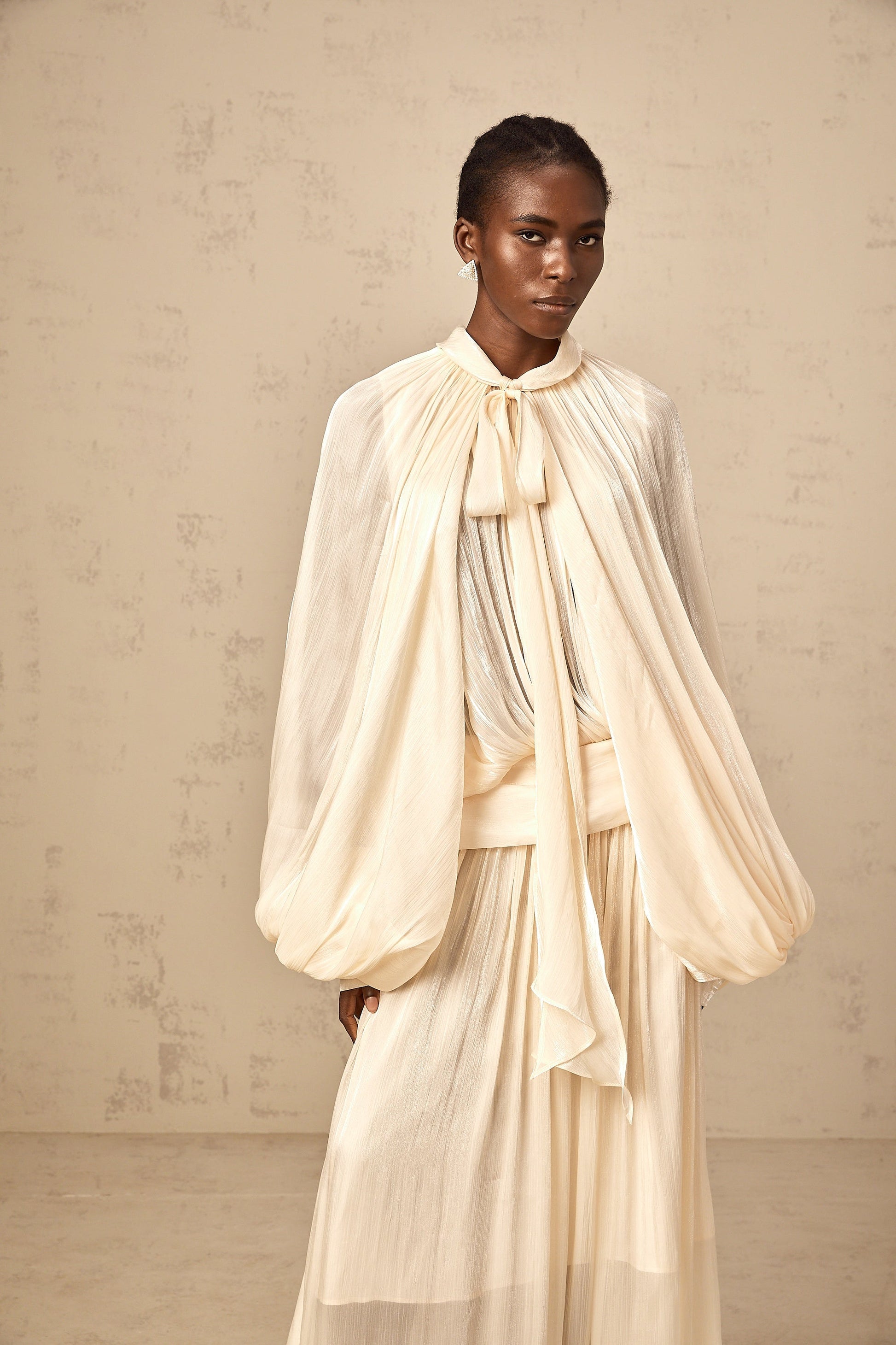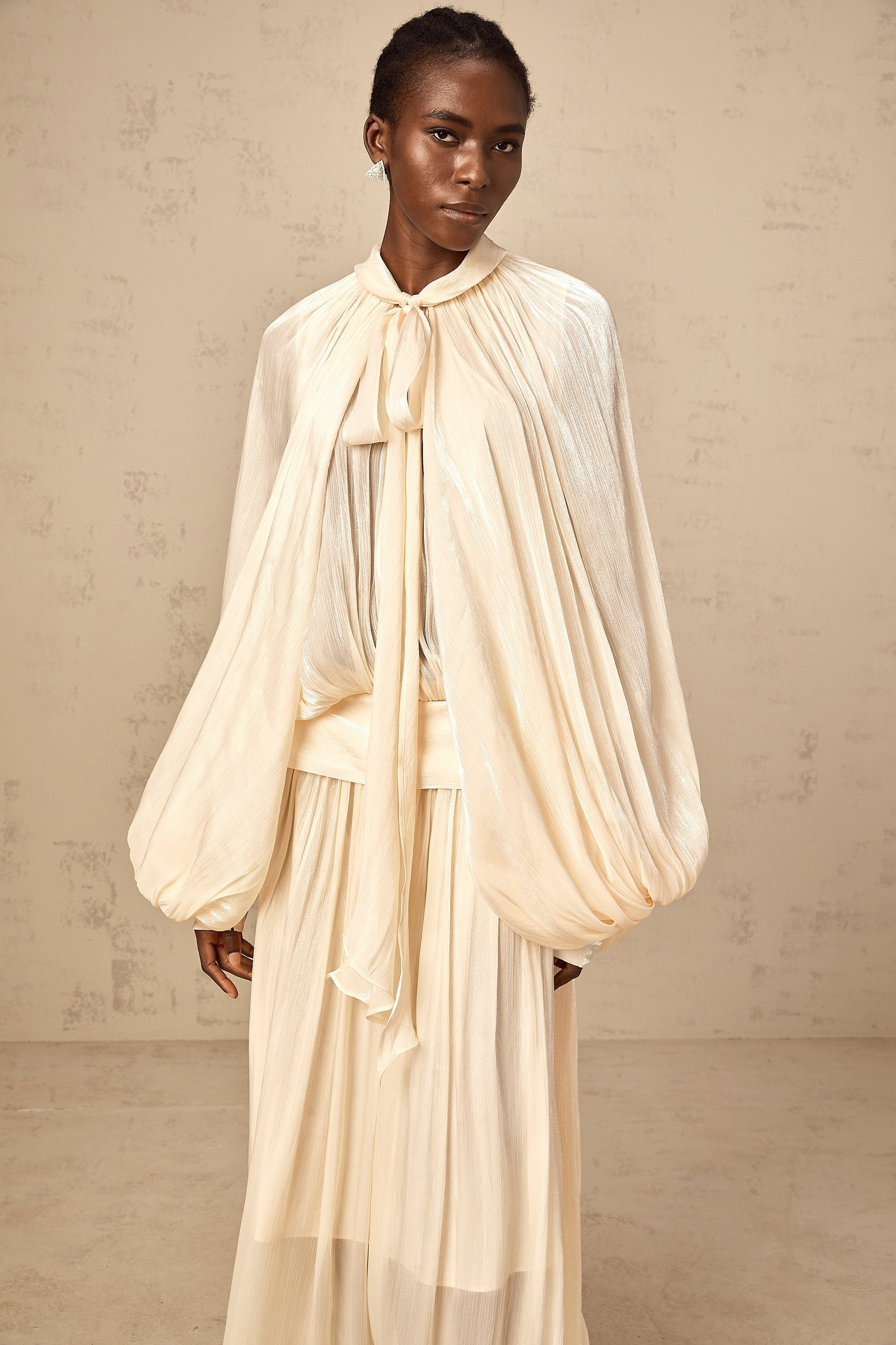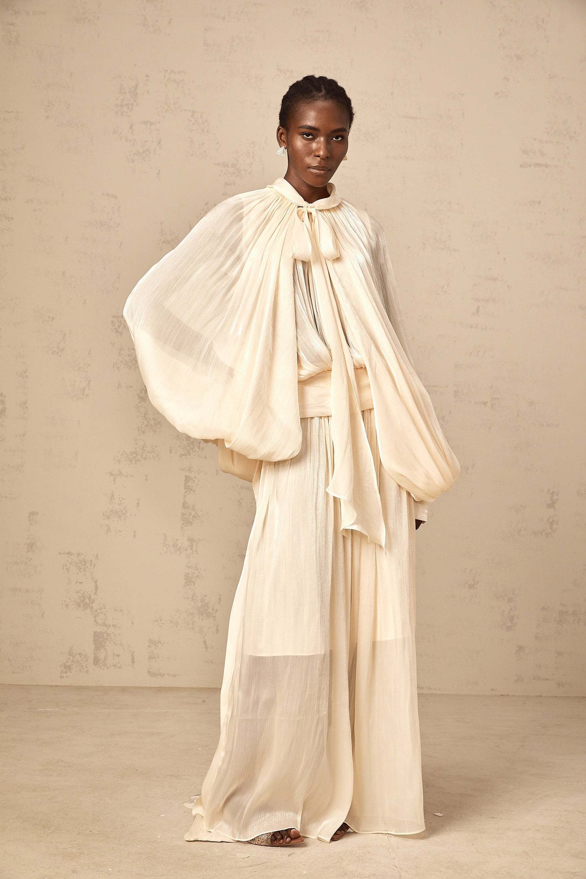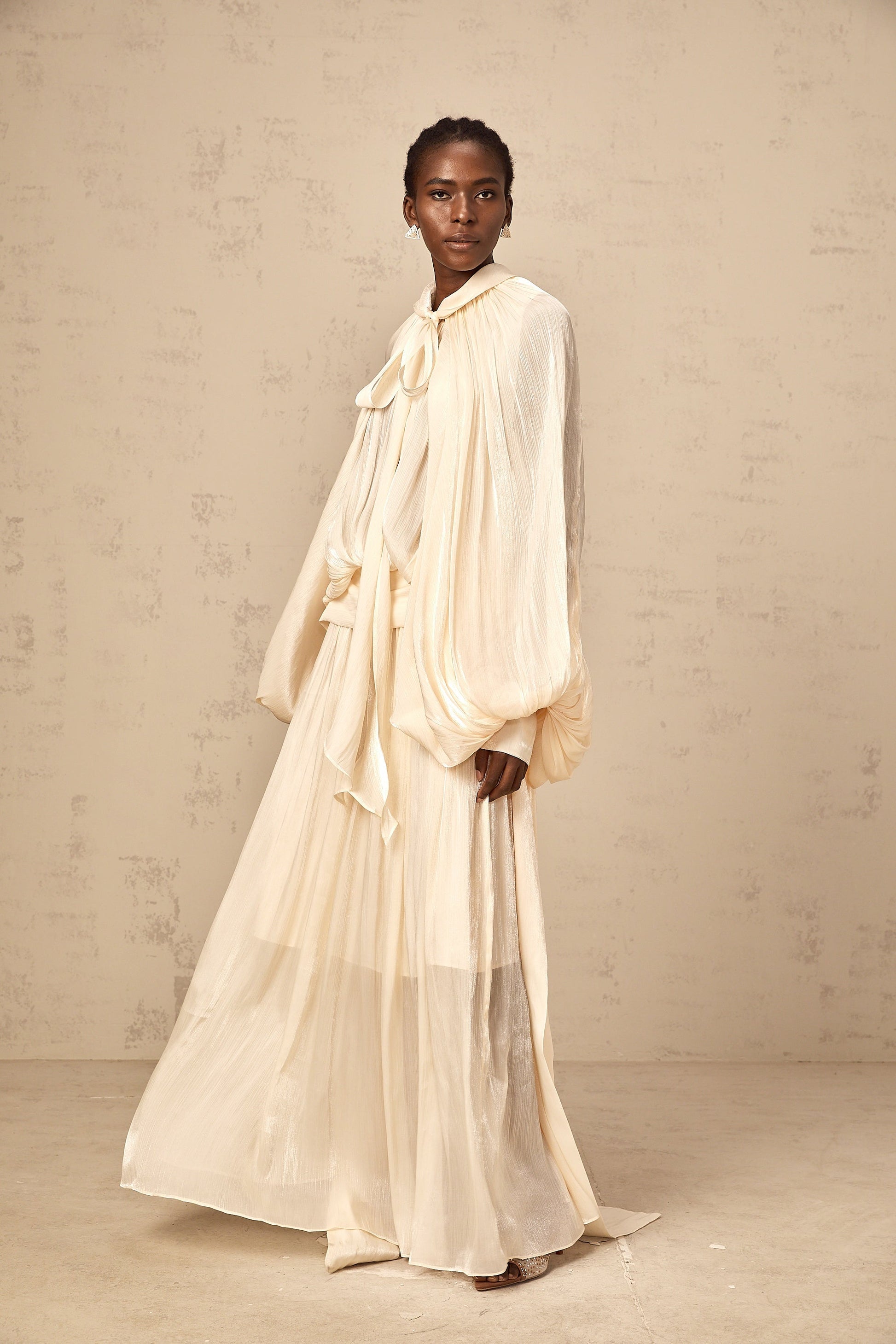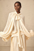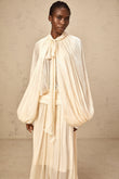 Cream - Colored Maxi Dress with Cape - Like Sleeves