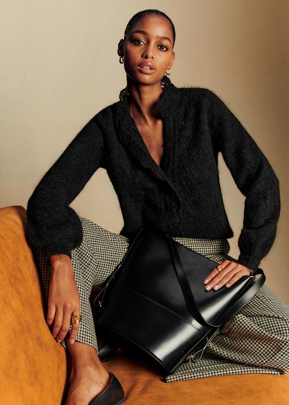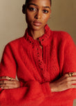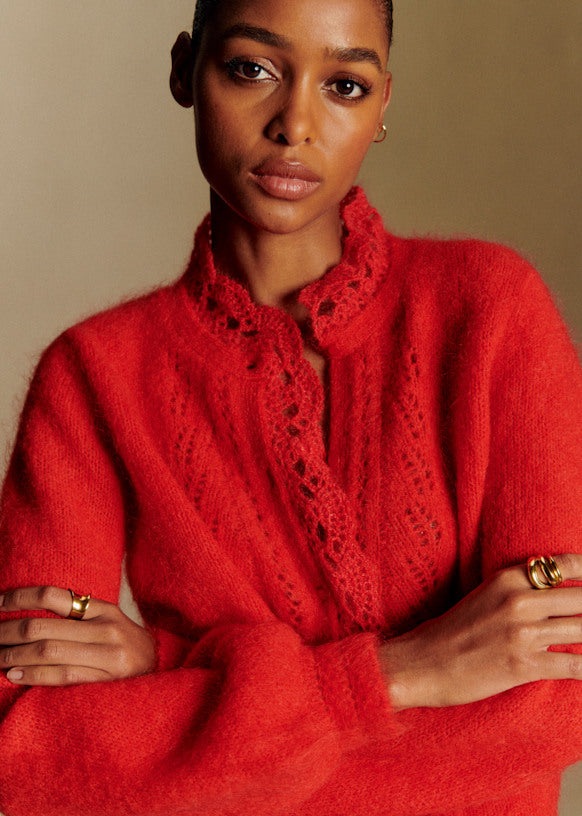 Cropped Knit Cardigan with Openwork Detailing
