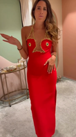 Embellished red halterneck maxi dress