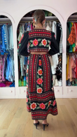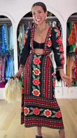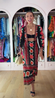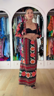 Floral Print Kimono - Style Cardigan and Midi Skirt Set
