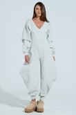 Grey V - Neck Oversized Jumpsuit