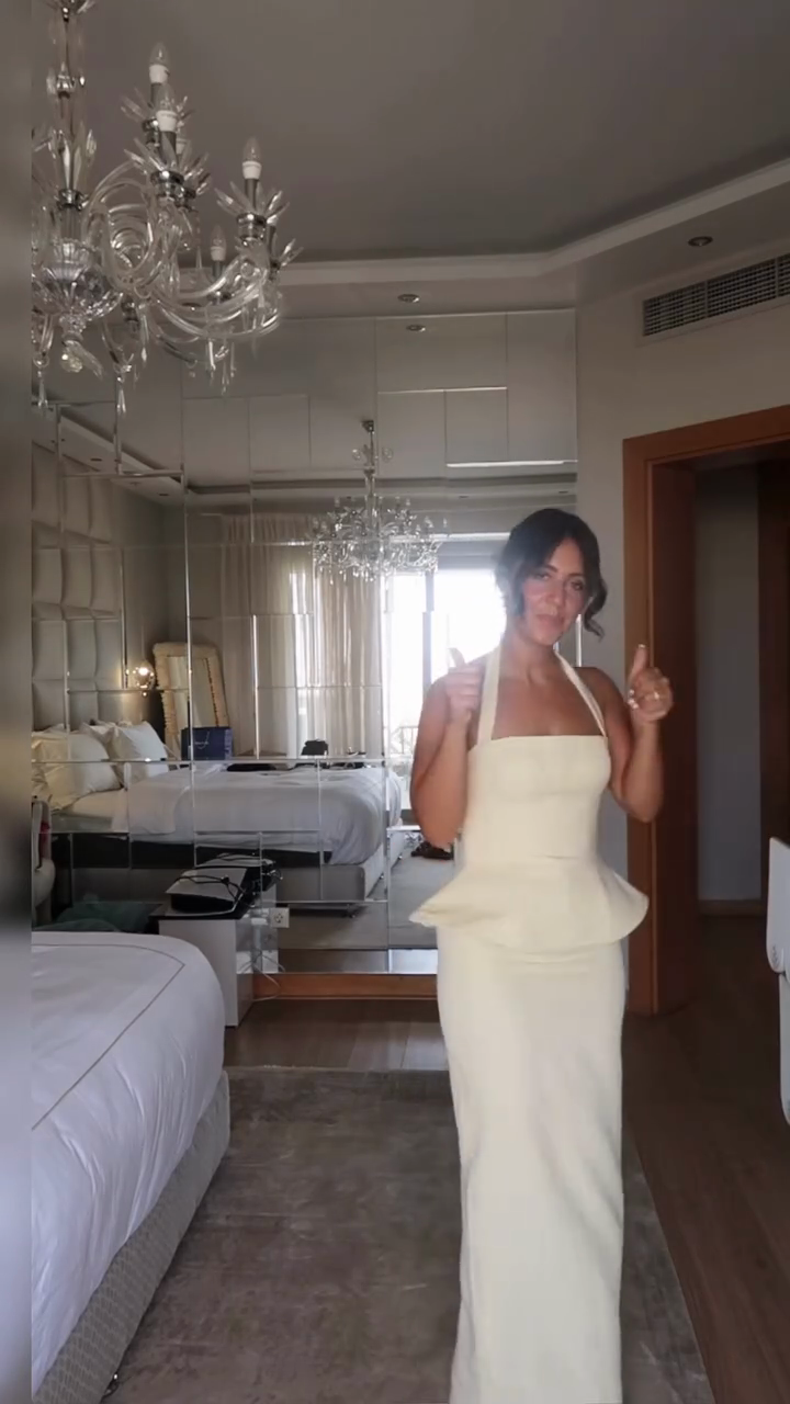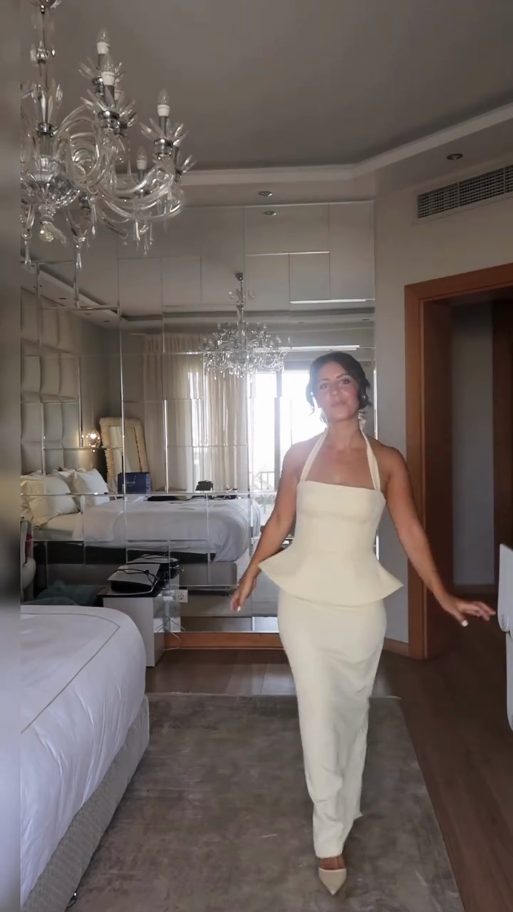 Ivory Halter Peplum Top and Maxi Skirt Set