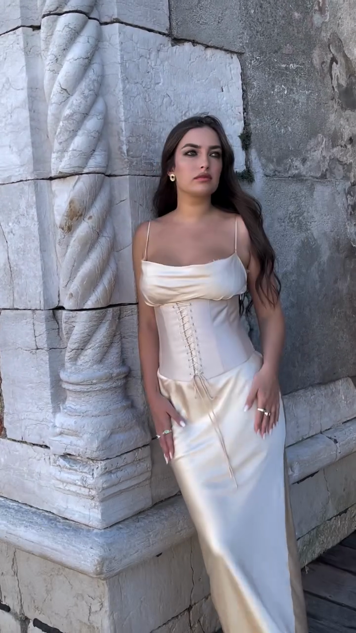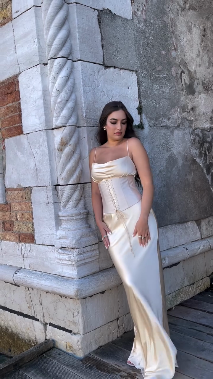 Ivory Satin Corset - Style Maxi Dress