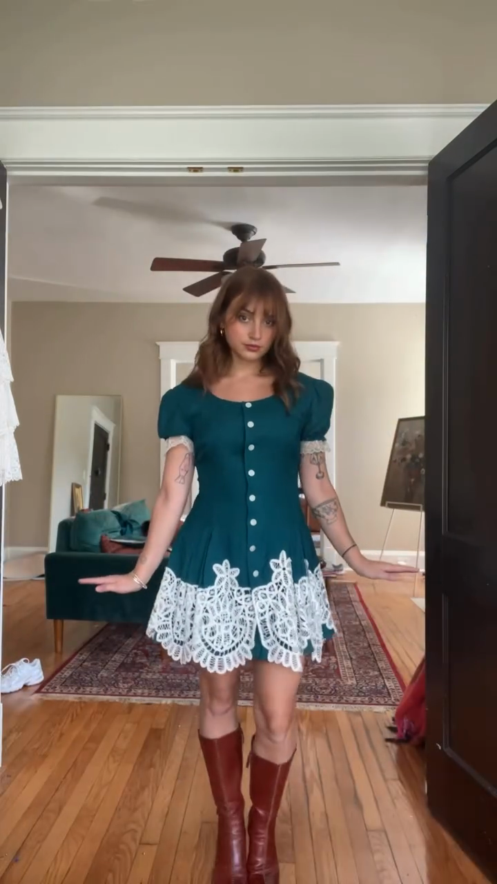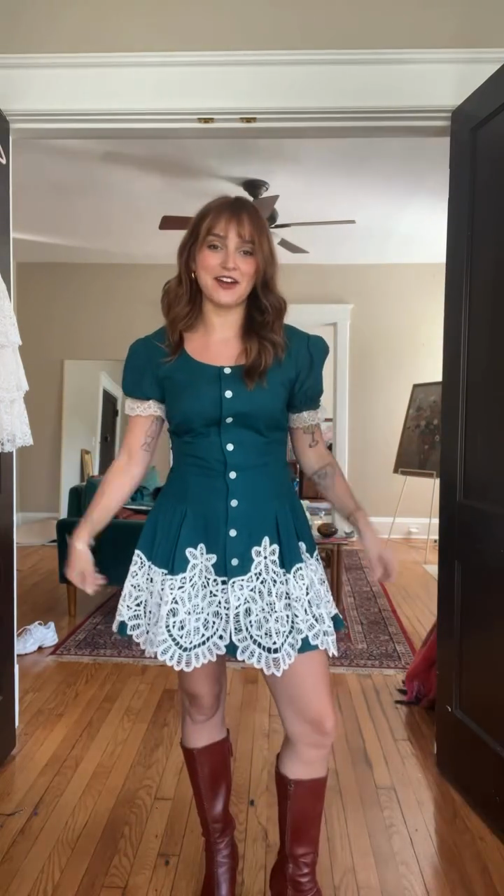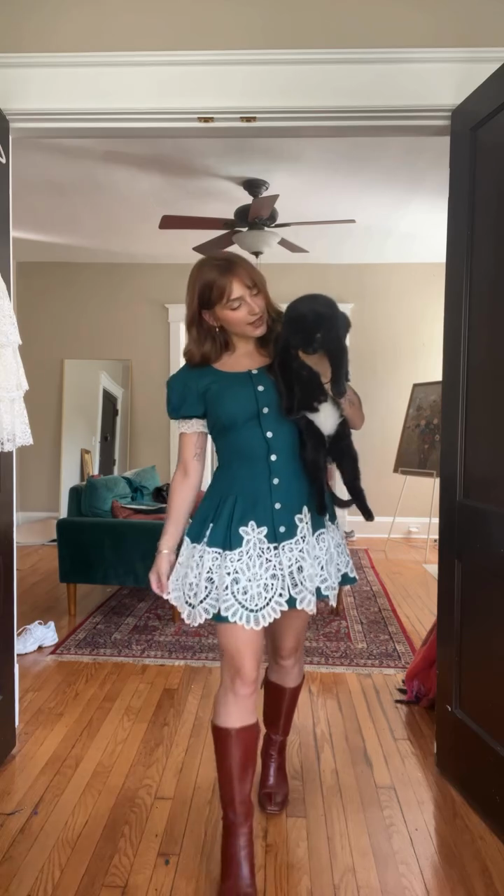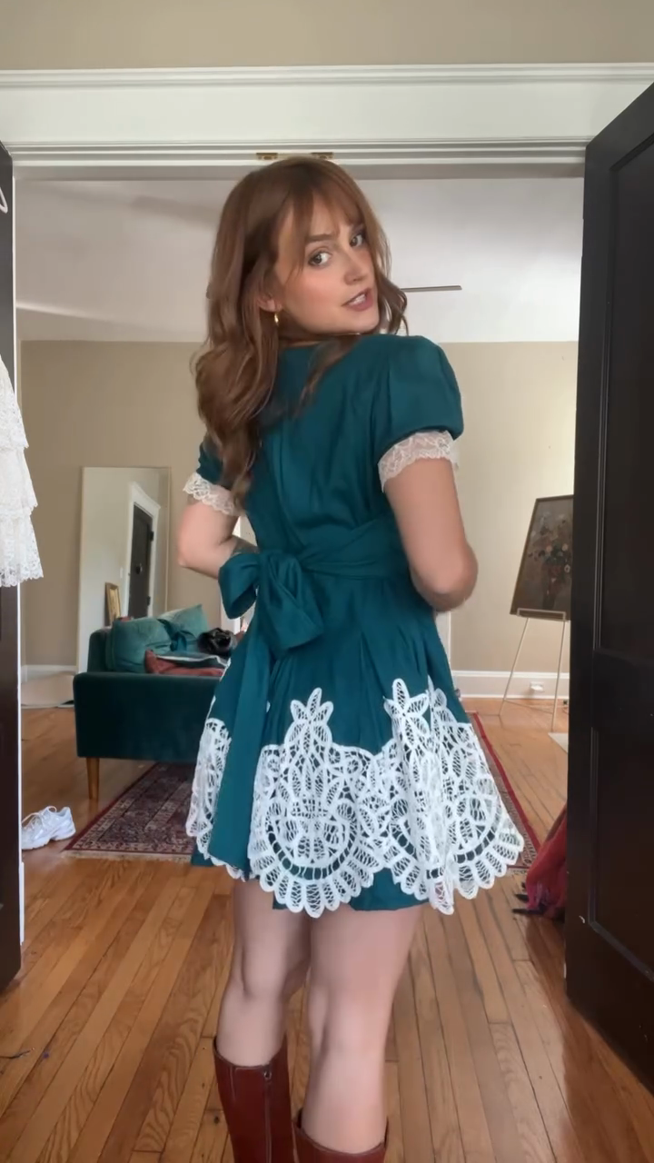 Lace - Trimmed Puff - Sleeve Mini Dress