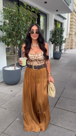 Leopard Print Crop Top & High - Waisted Wide - Leg Pants Set