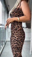 Leopard - Print Spaghetti - Strap Midi Dress