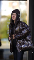 Filled with premium insulation, it provides exceptional warmth, making it ideal for cold weather. Ribbed cuffs effectively block out cold air. The loose, comfortable fit easily layers over sweaters or other winter clothing. Pair it beautifully with casual wear, such as the black leggings pictured, or add a crossbody bag for a complete look.