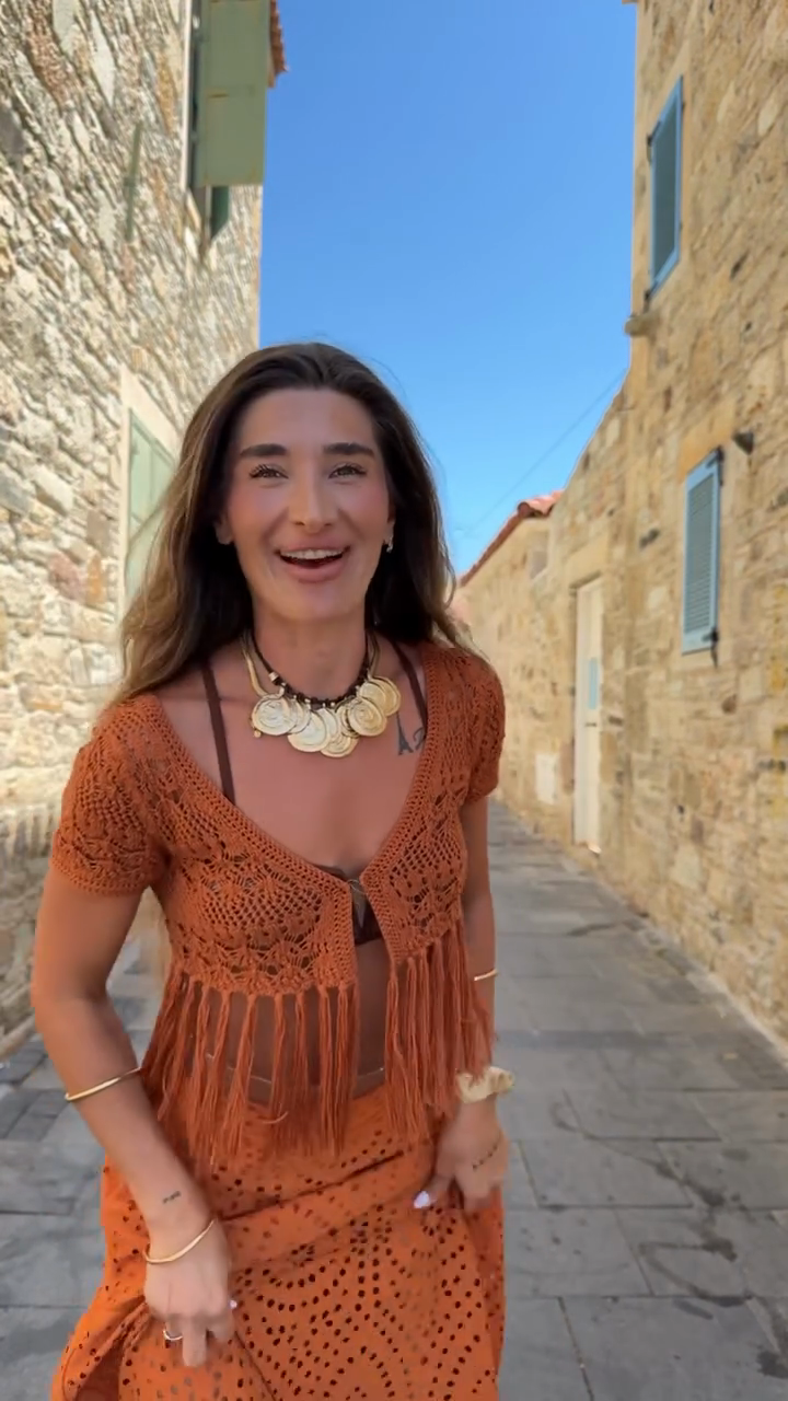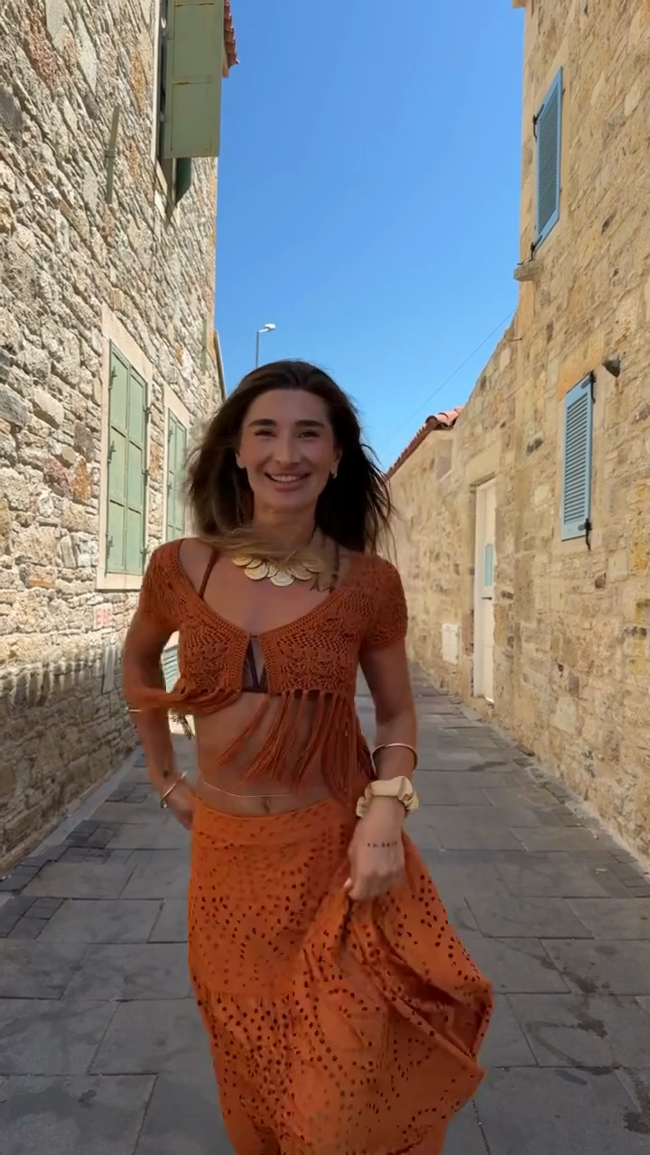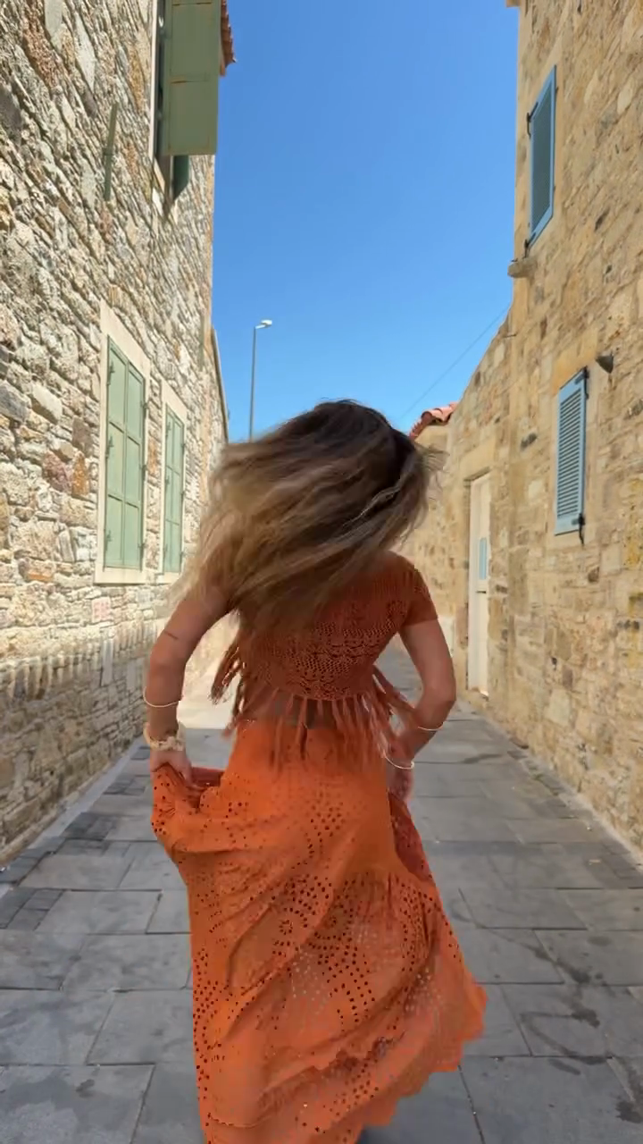 Orange Crochet Fringe Top & Eyelet Skirt Set