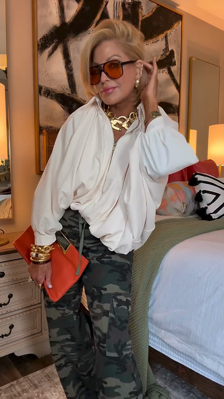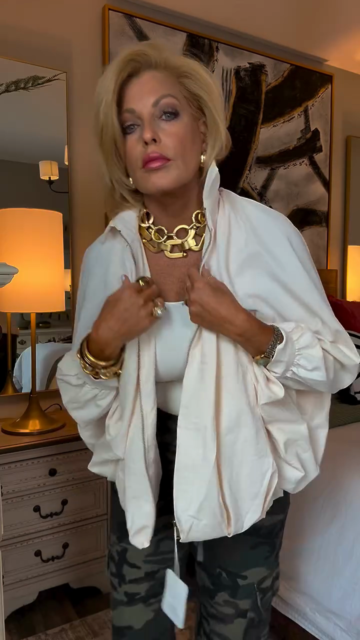 Oversized White Zip - Up Jacket
