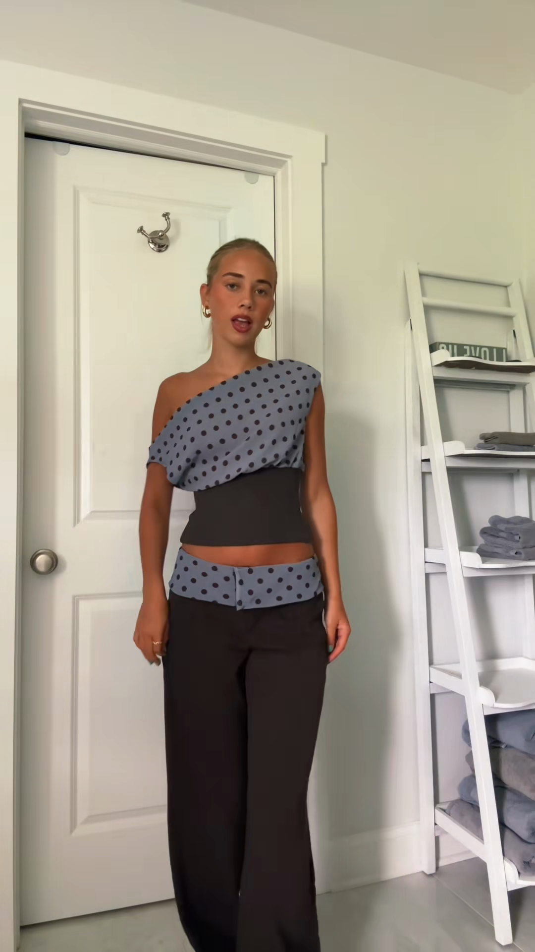 Polka Dot One - Shoulder Crop Top and Wide - Leg Pants Set
