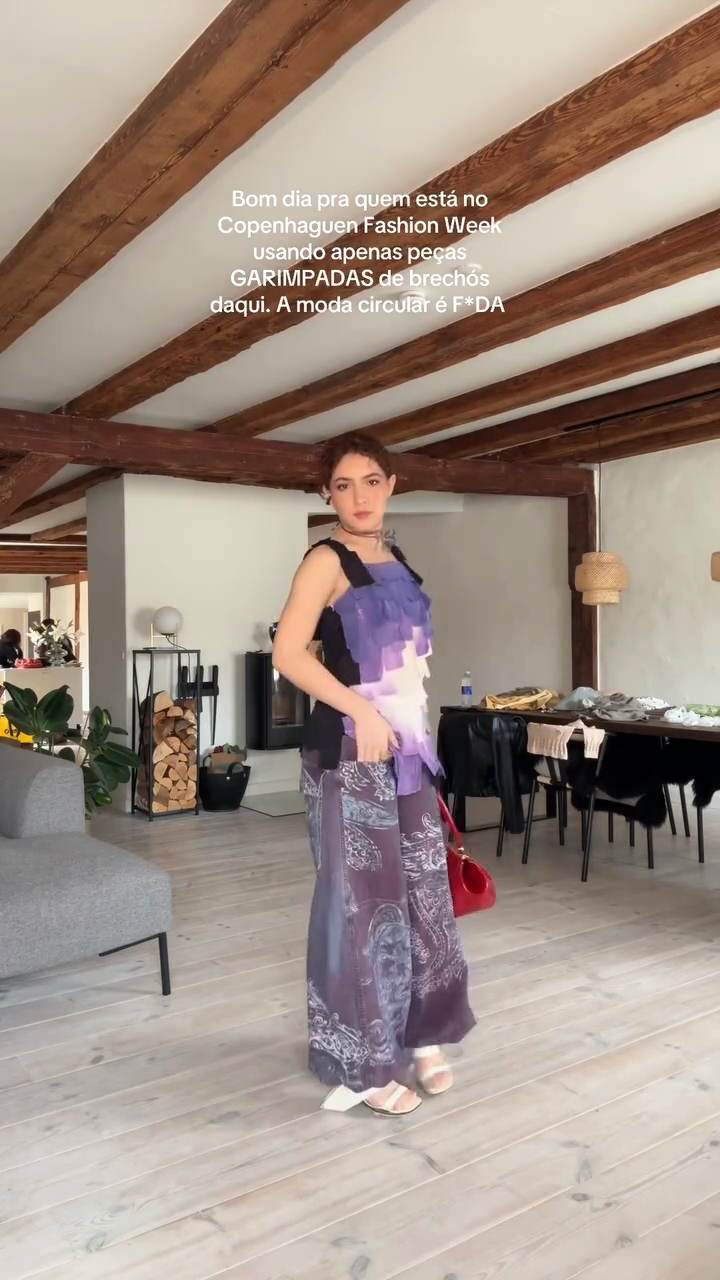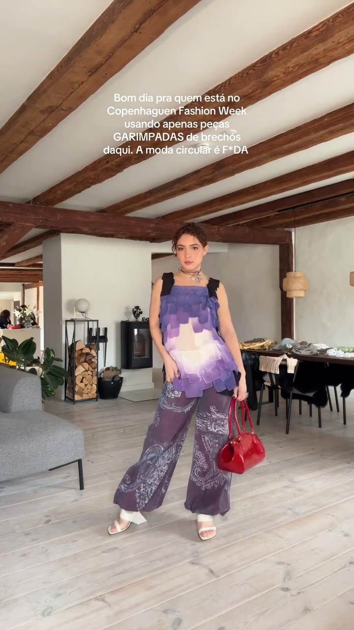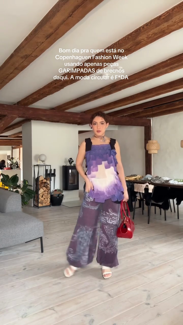 Purple Tiered Top and Printed Pants Set