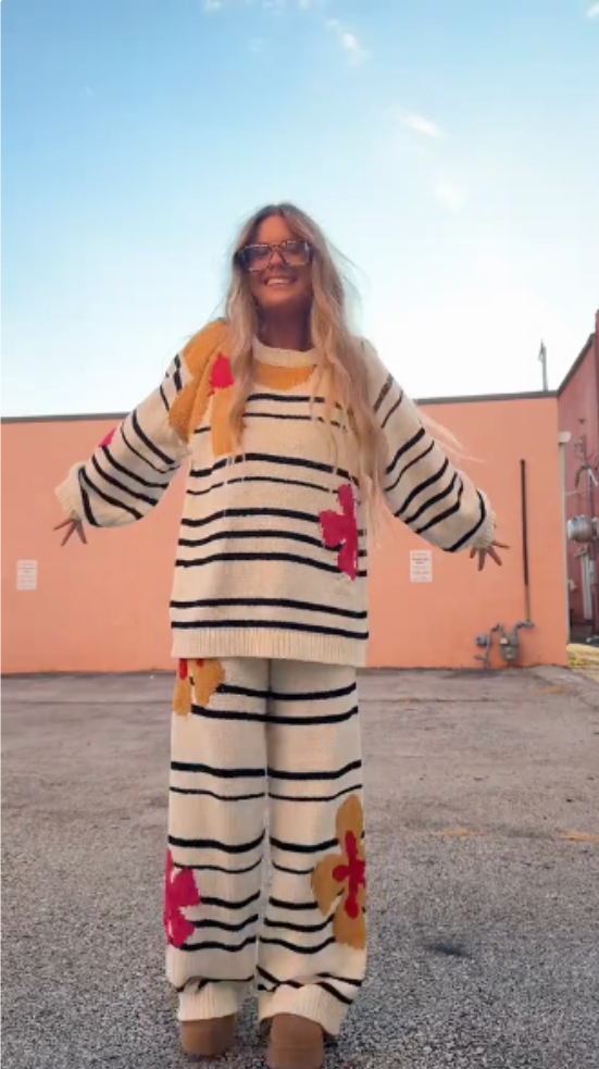 Striped Floral Knit Co - ord Set