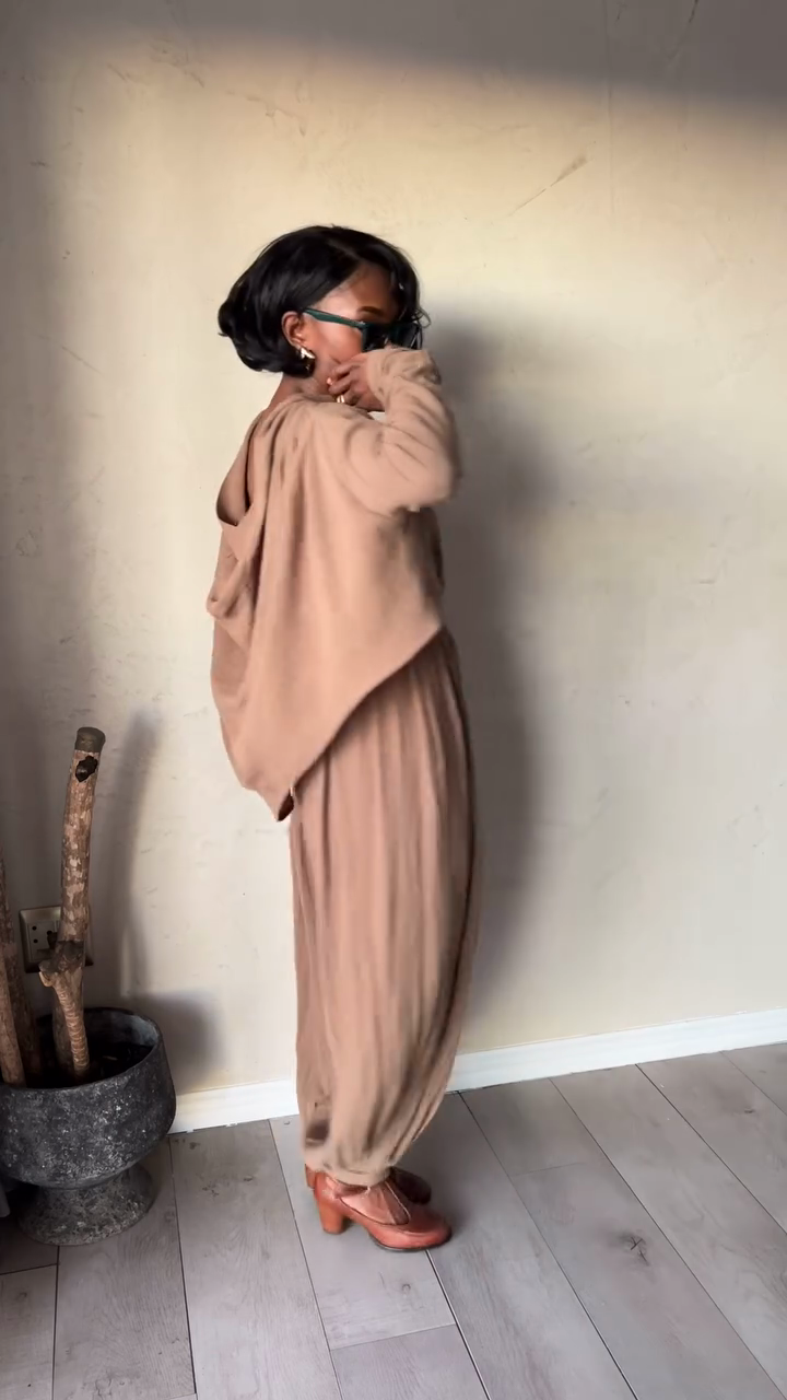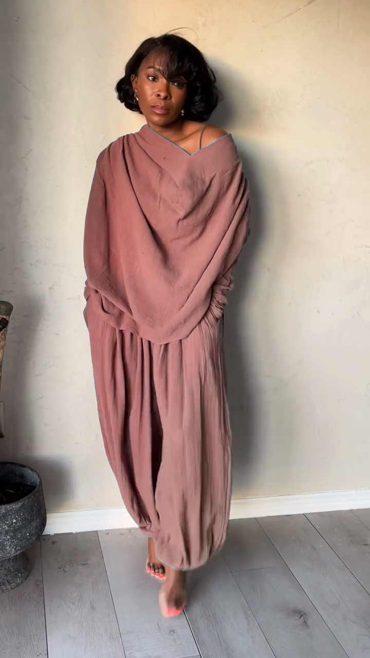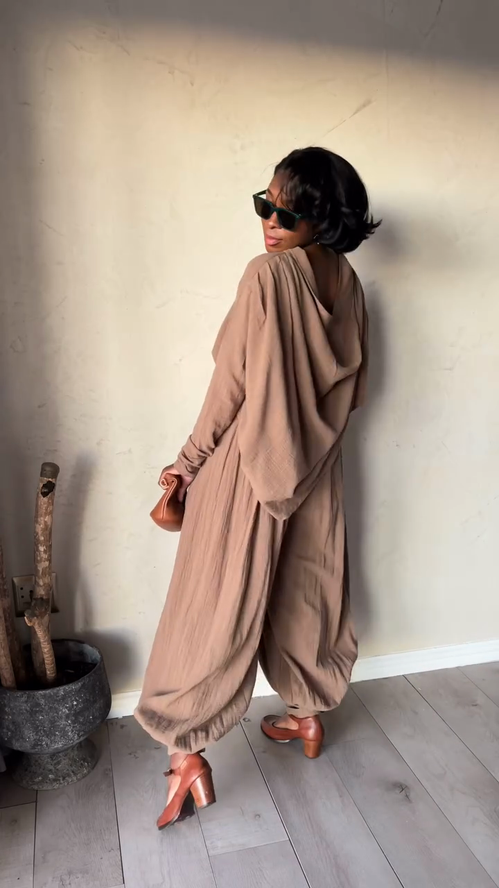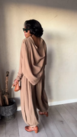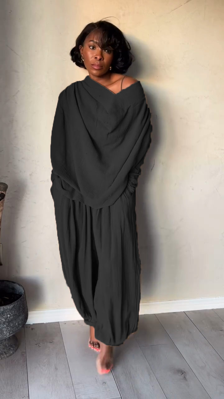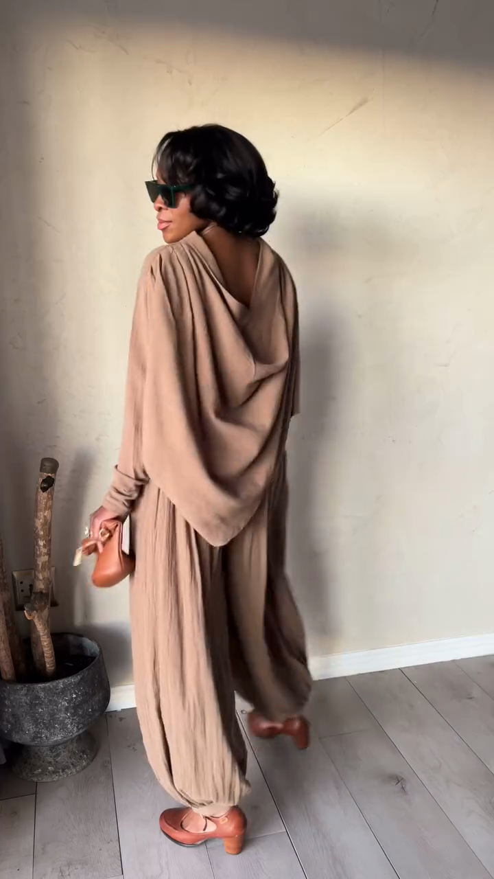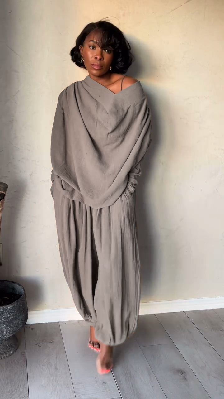 Taupe Off - the - Shoulder Top and Baggy Pants Set
