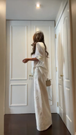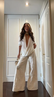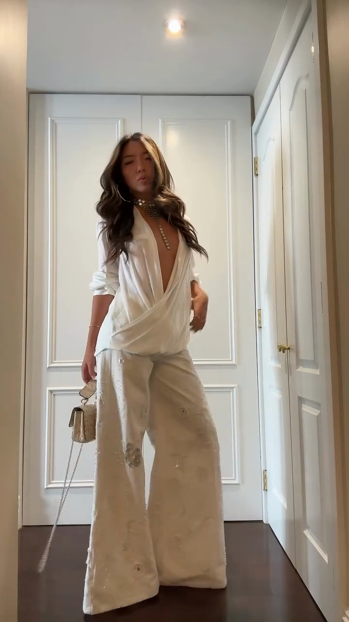 White Deep - V Wrap Top and Embellished Wide - Leg Pants Set