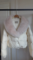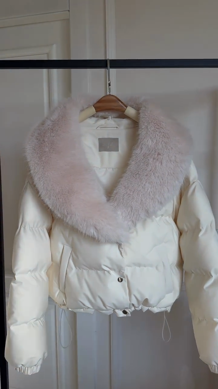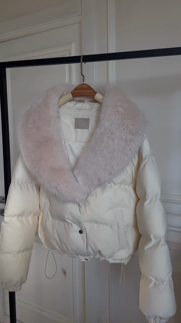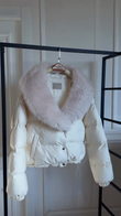 White Puffer Jacket with Pink Fur Collar