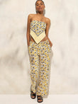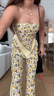 Yellow Floral Print Tube Top and Pants Set