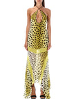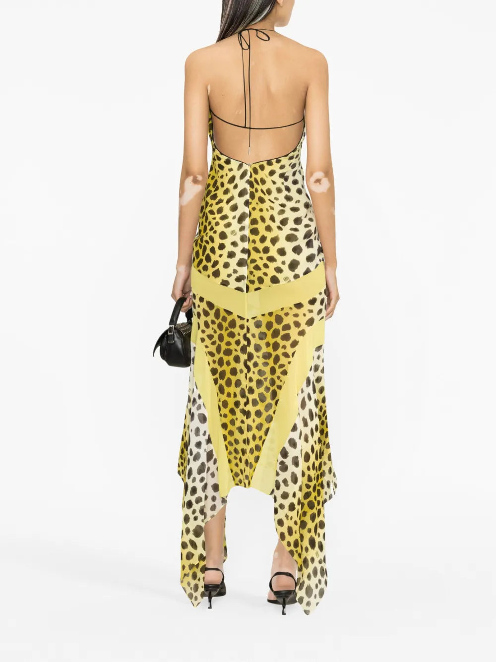 Yellow Leopard - Print Halter Neck Maxi Dress